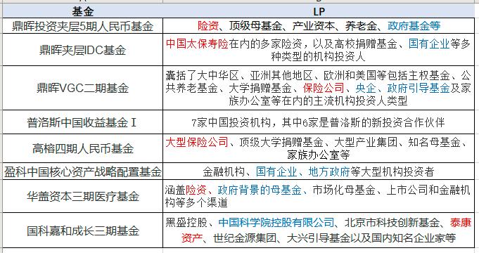 在鼎晖投资夹层5期人民币基金、鼎晖夹层IDC基金、鼎晖VGC二期基金,高榕四期人民币基金、盈科中国核心资产战略配置基金、华盖资本三期医疗基金、国科嘉和成长三期基金等基金的LP中,险资、政府引导基金、国有企业成为重要组成部分,尤其是前两者几乎出现在每一只成功募集的人民币基金中。