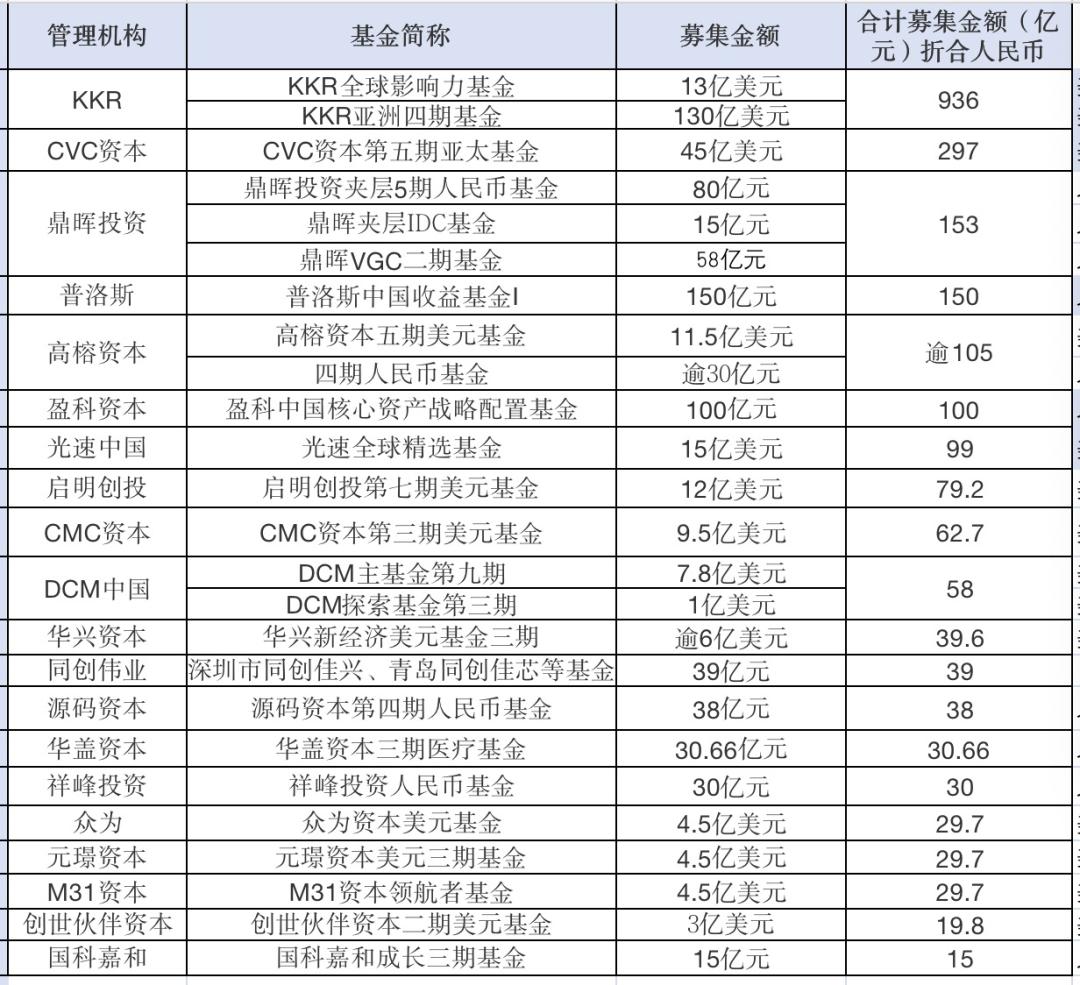 KKR、CVC、高榕资本等美元基金募资成绩亮眼