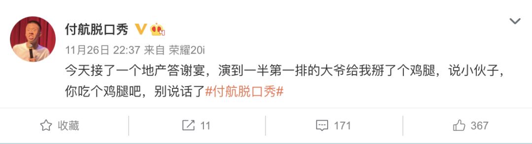 (脱口秀演员付航的微博)