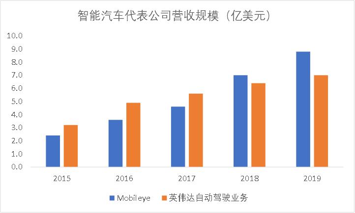 但企业的长期市值会回归于其创造的价值。事实上,智能汽车的商业化模式已经开始在各个环节开始走通,这也是判断一个企业是否是领先者的重要标志。Mobileye作为自动驾驶芯片的最大赢家之一,拳头产品EyeQ芯片2019年出货量已经达到1700多万颗,营收也达到8.8亿美元,英伟达2019年自动驾驶业务收入规模也有7亿美元,初具气候。