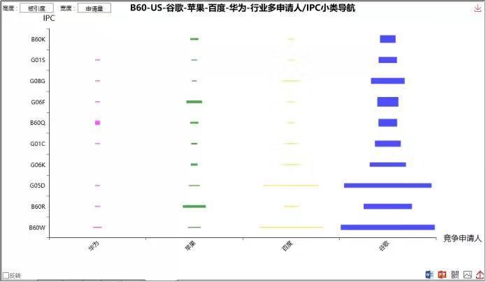 图1:谷歌、百度、华为与苹果自动驾驶相关专利强度比较。资料来源:Patentics