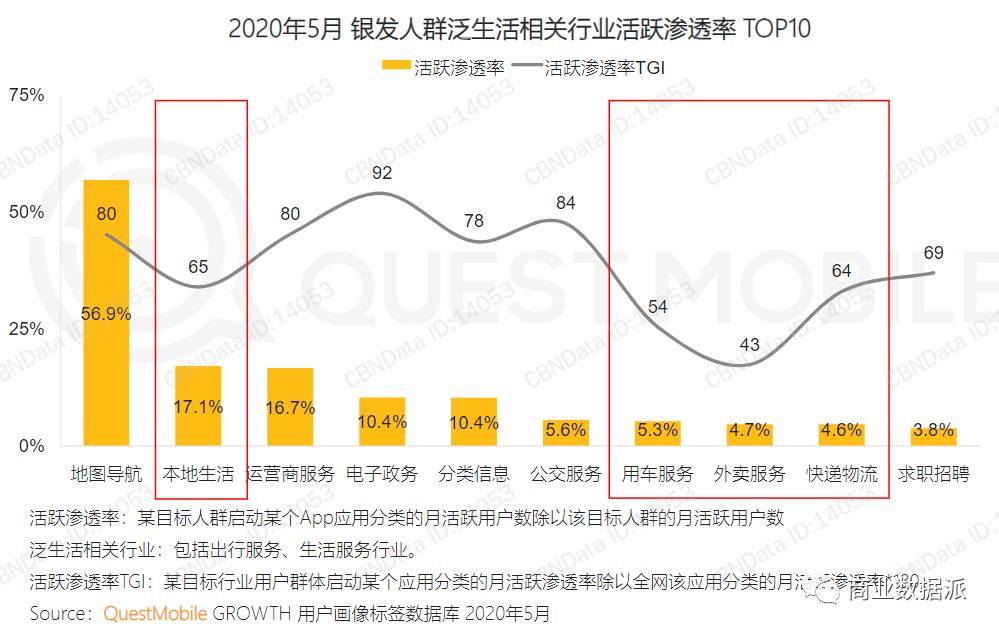 但现实却很残酷,多数已入网的银发人群还未形成互联网生活习惯。QuestMobile的数据显示,在老来网们创业的泛生活赛道中,除了地图导航外,本地生活、分类信息、用车服务等绝大多数互联网子领域,银发人群的渗透率均不超过20%,老年互联网市场仍然处于早期探索阶段。