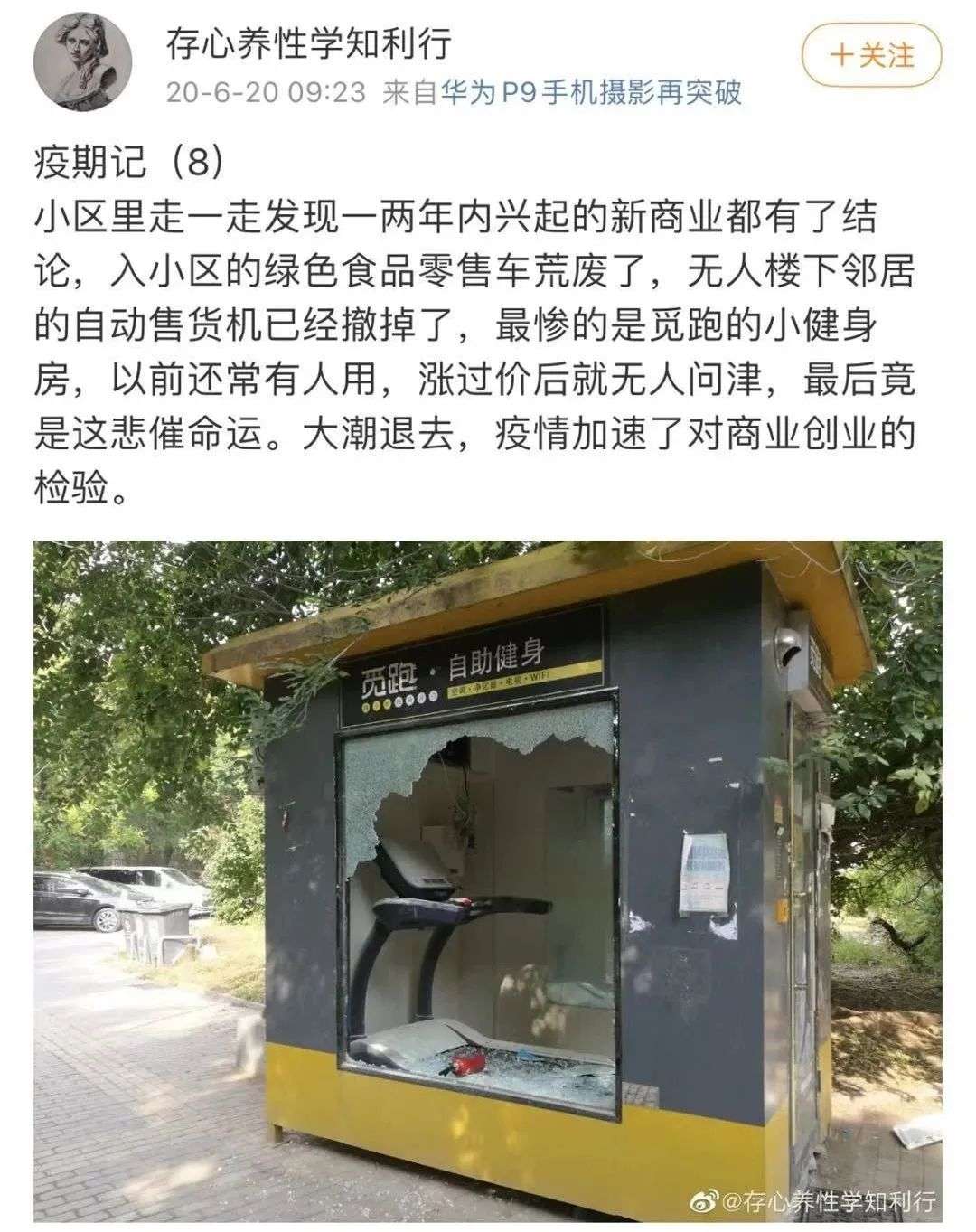 ■ 觅跑健身仓疫情期间状态 ,来源:微博@存心养性学知利行