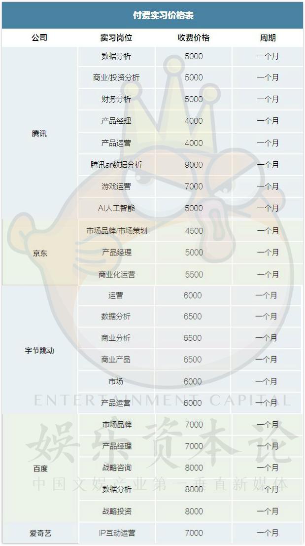 这些岗位都明码标价,比如京东的产品运营岗是8000,字节跳动的短视频岗是6500,爱奇艺的IP互动运营岗是7000一个月,周期可以自行延长,实习三个月就需要1万8。