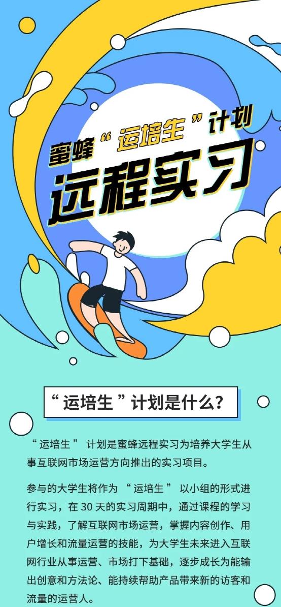 第三方机构和平台推出的远程实习项目不是直接进入企业工作,而是以训练营的形式,由平台方安排课程,布置任务,参与者按时完成任务并打卡,最终可以得到实习证明。比如互联派创立的“蜜蜂运培生”远程实习,就是围绕运营的相关课程和实践展开的。