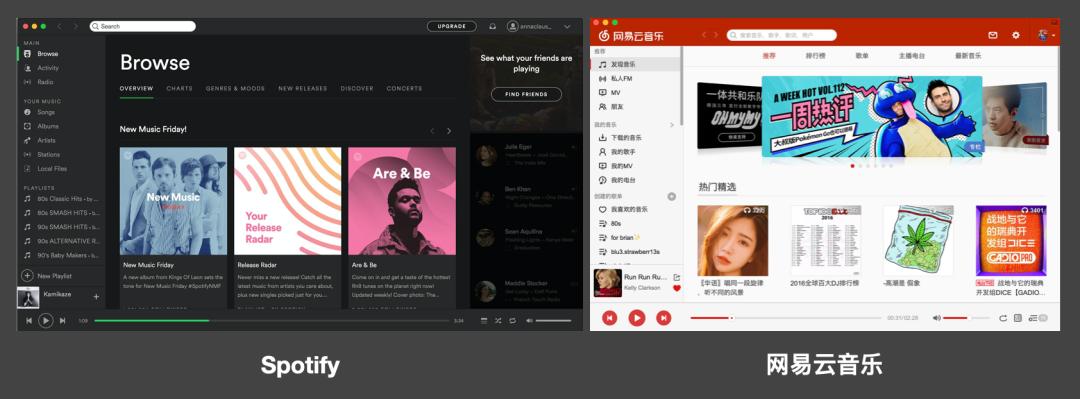 Spotify 是一家瑞典的公司,同样做音乐流媒体平台,产品在 2008 年就发布了,也是比较早期且主流的音乐产品。