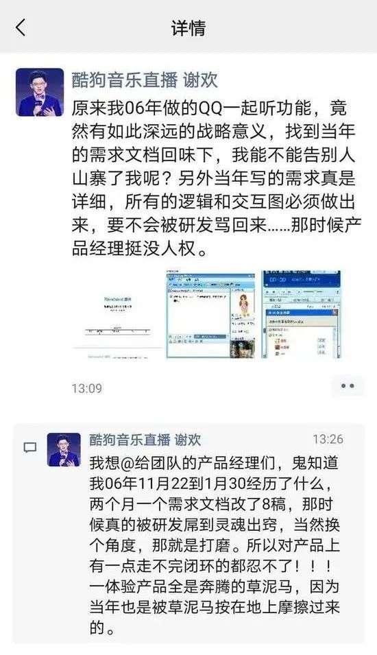 被网易这么一搞,酷狗自然也没闲着。副总裁在朋友圈发声,说 06 年就做过这个功能,PRD 还在。