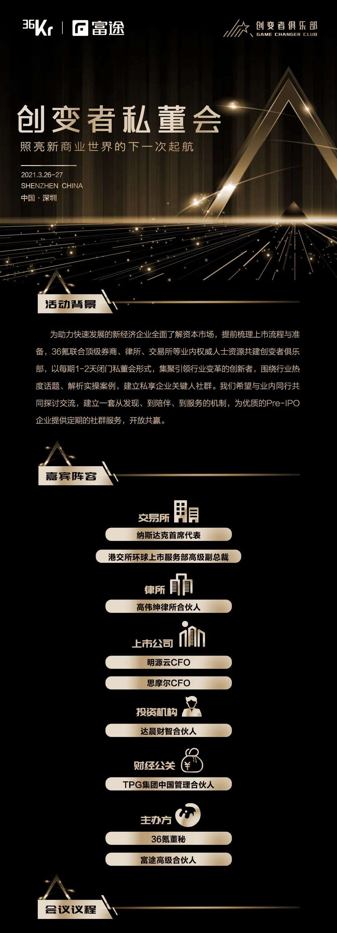 36氪与富途将在3月26日到27日,于深圳联合举办第二期“创变者私董会”,尝试为有海外上市意向的老板们提供看穿“战争迷雾”的机会。