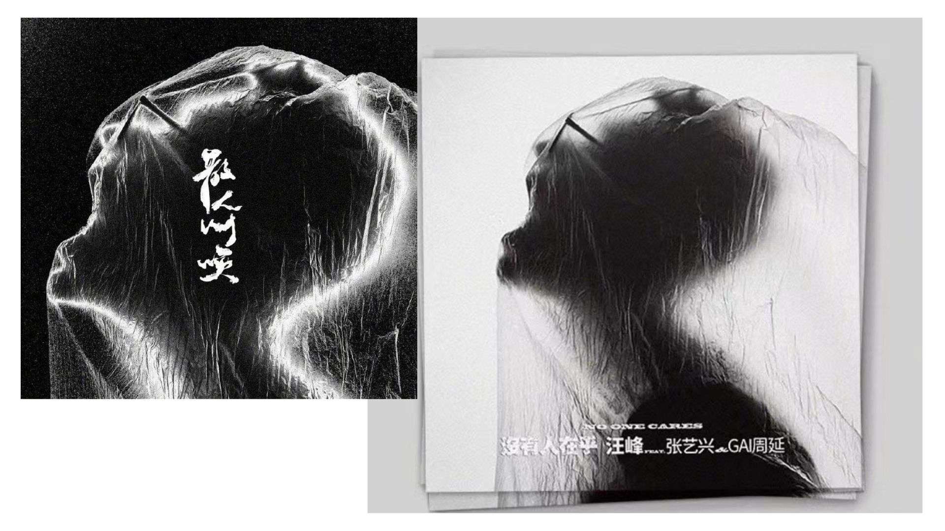 今年1月31日,汪峰发布新歌《没有人在乎》,单曲封面被爆和另外一家乐队在2019年发布的歌曲《叫唤》封面几乎一模一样,是一张头戴塑胶袋的呐喊人物侧拍。在这个案例里,双方似乎都没有侵权,只是碰巧使用了同一个摄影师Cristian Newman的作品。这位摄影师来自墨西哥,曾把自己的摄影作品上传到一个免费作品分享平台。