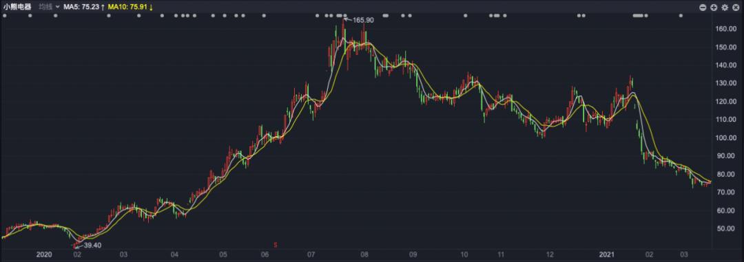 对于小熊电器来说,2020年四季度的业绩低于预期,是其被投资者抛弃的重要原因:小熊电器并没有表现出优于整个小家电市场大环境的足够实力。