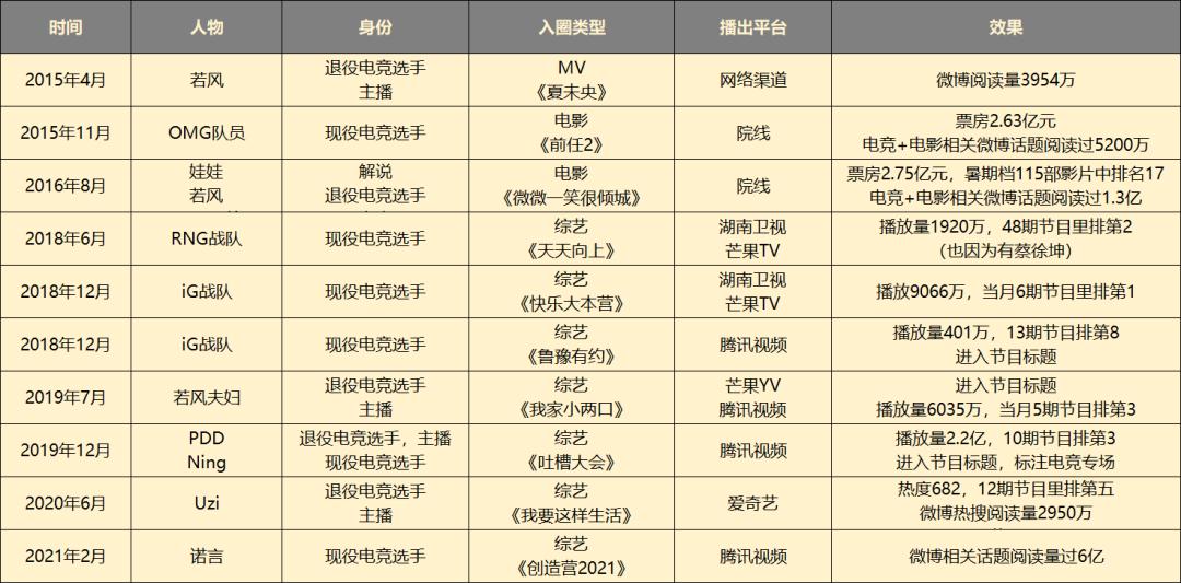 整体看,走的是被动接触圈外——主动模仿——先做靠近电竞用户的直播、综艺——再做靠近大众用户的影视——最后推动业内人物“IP”向大众圈子转型的逻辑。