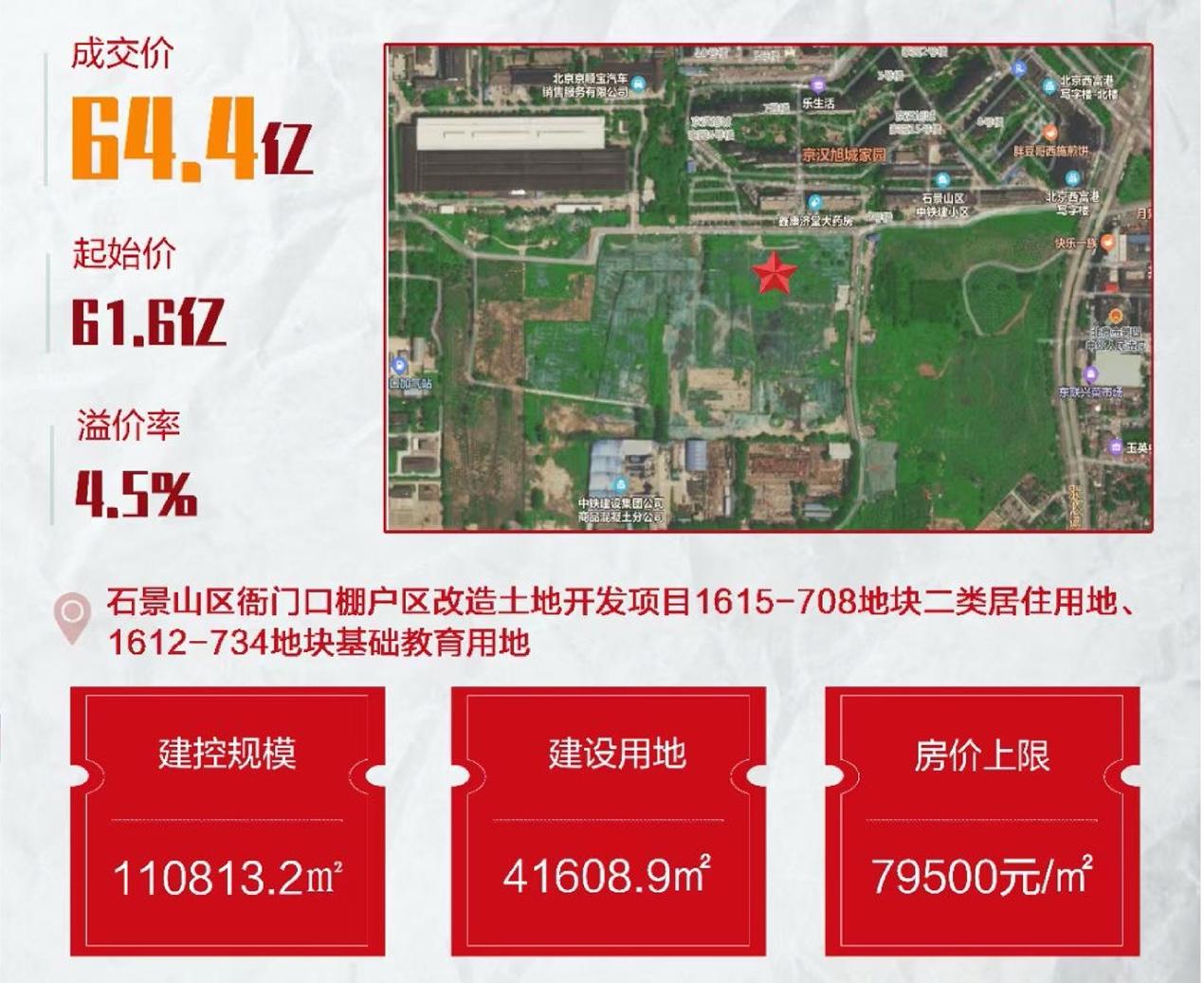 上文提到了石景山的土地成交比例大幅缩减,事实上在本次土拍中,石景山区域仅有一块土地供应。最终由融创+石泰以64.4亿的成交价竞得。该地块成交楼面价58115.8元/㎡,房价上限为79500元/㎡。如此一来,便将京西区域的价格天花板硬生生地给撑高了。