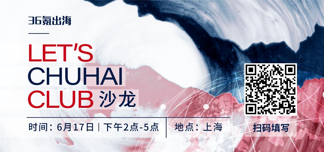 6月17日,由36氪出海打造的 LET'S CHUHAI CLUB 沙龙将在上海和大家见面。本场活动将邀请多位行业重磅嘉宾,就跨境电商、文娱出海及企业服务等热门话题展开深度分享交流,共同探讨中国出海企业如何在海外市场发掘新机会,寻找增长点。