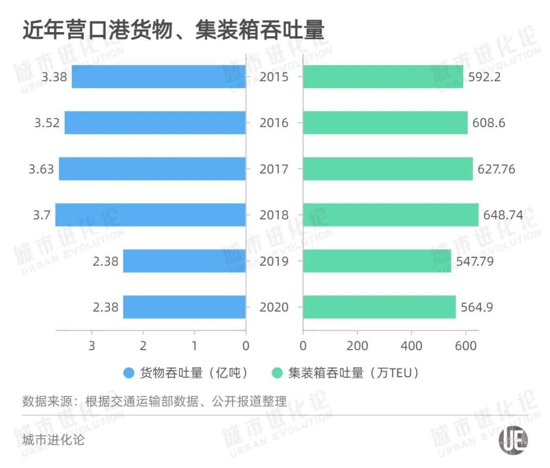 鲅鱼圈区因港而生,营口港货物吞吐量在3亿吨左右的水平,集装箱吞吐量在600万标箱左右的水平,在全国港口集装箱吞吐量排名中徘徊在第八到第十位。不过近年来,营口港吞吐量略有下降。