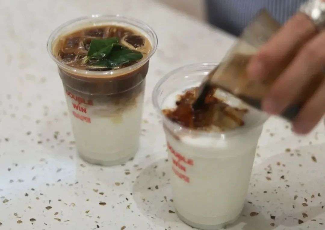 DOUBLE WIN品牌首款风味饮品“柠檬叶冰拿铁咖啡”,除了将柠檬叶的香气融入咖啡中,还加了爆爆珠、寒天等小料,一上市便成为门店爆款,至今仍为核心单品之一。