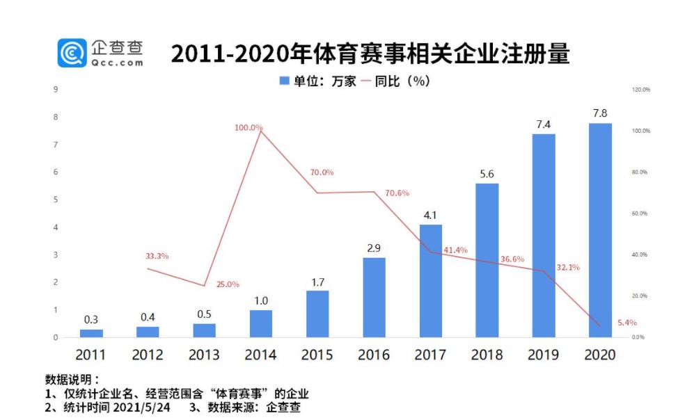 据企查查数据显示,国内目前共有31.7万家体育赛事相关企业,其中有约41%的企业成立时间超过3年。从体育赛事公司注册量来看,近10年国内赛事相关公司注册量呈现增长趋势。
