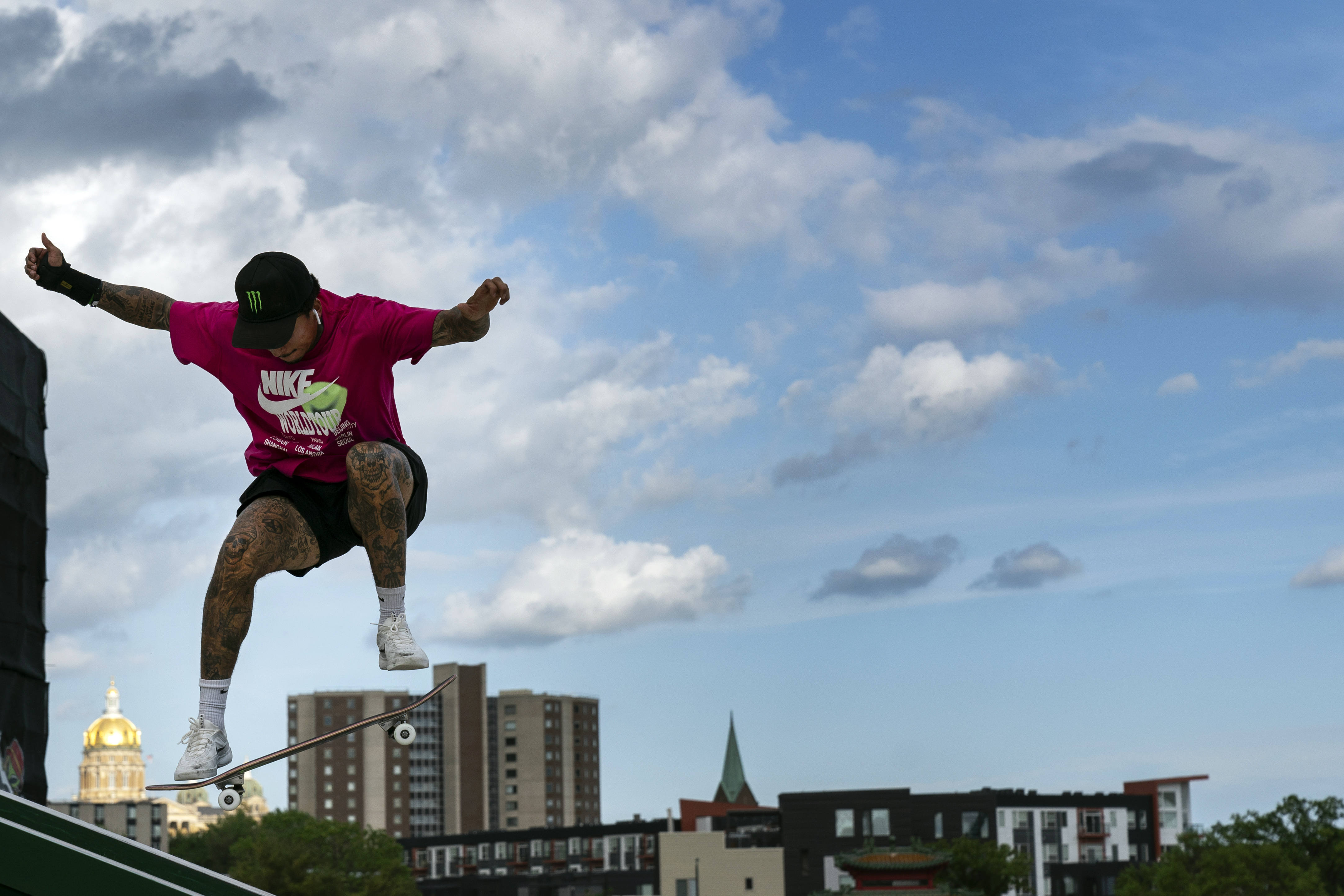 2021年5月23日,滑板手Nyjah Huston在爱荷华州得梅因比赛。(图源:Todd Heisler /《纽约时报》)