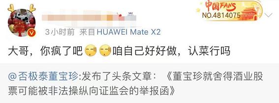 有媒体在董宝珍工作人员建立的微信群内问及“是否持有舍得或者白酒板块的空头仓位?”否极泰的工作人员回复称:“关于我们基金持仓,是我们公司核心秘密,不方便回答。”