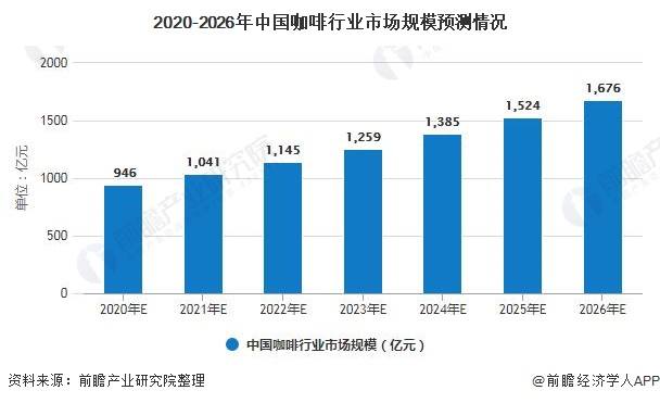 据前瞻产业研究院2020年报告预测,中国作为全球最大的咖啡消费市场,2021~2026年的市场规模将保持10%的平均复合增速,到2026年接近1700亿元。