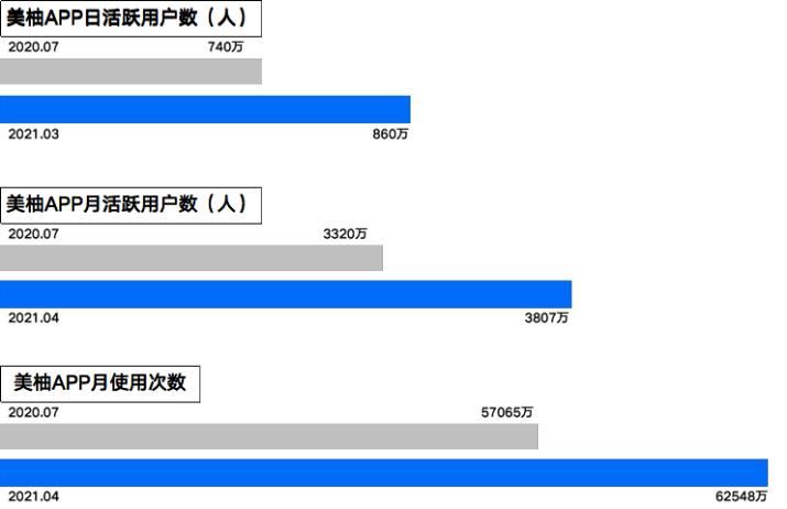 值得注意的是,在过去将近一年的时间里,以上运营数据较招股书披露数据有了不小的增幅。以美柚App为例,根据QuestMobile数据显示,从2020年7月1日至2021年4月1日,月活跃用户数从3320万人增至3807万人,月使用次数从57065万次增至62548万次,日活跃用户则从740万增至2021年3月的约860万。