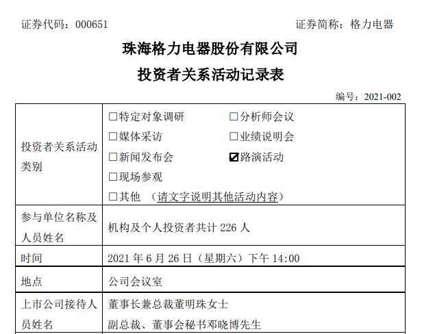 另外,格力电器表示,高瓴资本充分尊重公司经营班子和高管团队,公司管理层也将恪尽职守,把业务做好,推动公司做大做强,稳健发展。另外,原材料涨价对行业整体而言是普遍性挑战,公司在积极推动从产品设计和成本控制角度来降低原材料涨价带来的影响。