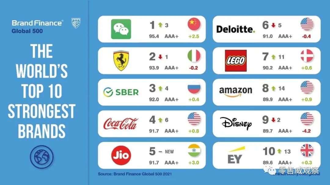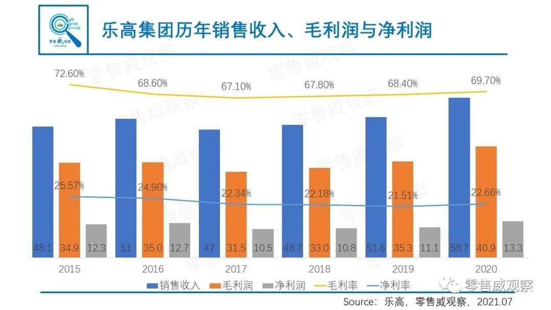 2015年,乐高超越法拉利成为全球最知名品牌,坐拥12.3亿欧元净利润,并在由Brand Finance出具的“最受尊重品牌排行榜(esteemed Brand Strongth Index)”中,在熟悉度、忠诚度、员工满意度、企业声誉等领域获得高分。2020年,乐高更获得了“全球最受喜爱品牌(The World's Most Loved Brand)”这一殊荣。