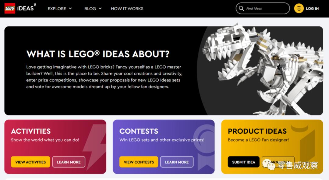 乐高围绕自己的粉丝,打造了名为“乐高创意(Lego Ideas)”的线上社区,这里汇集了来自全世界各地的粉丝和创作者,他们会对乐高的下一个产品进行想象、提案,成为了一个“消费者共创(Co-Creation)”、创意众包的社区。