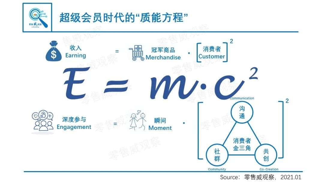 在此前的研究中,《零售威观察》曾经提到超级会员的“质能方程”,这其中最重要的就是实现“消费者的平方效应”,这个消费者就是由社群、交流和消费者共创共同形成的“消费者金三角”,毫无疑问,乐高就是将社群、交流和共创三点同时做好的优秀案例。