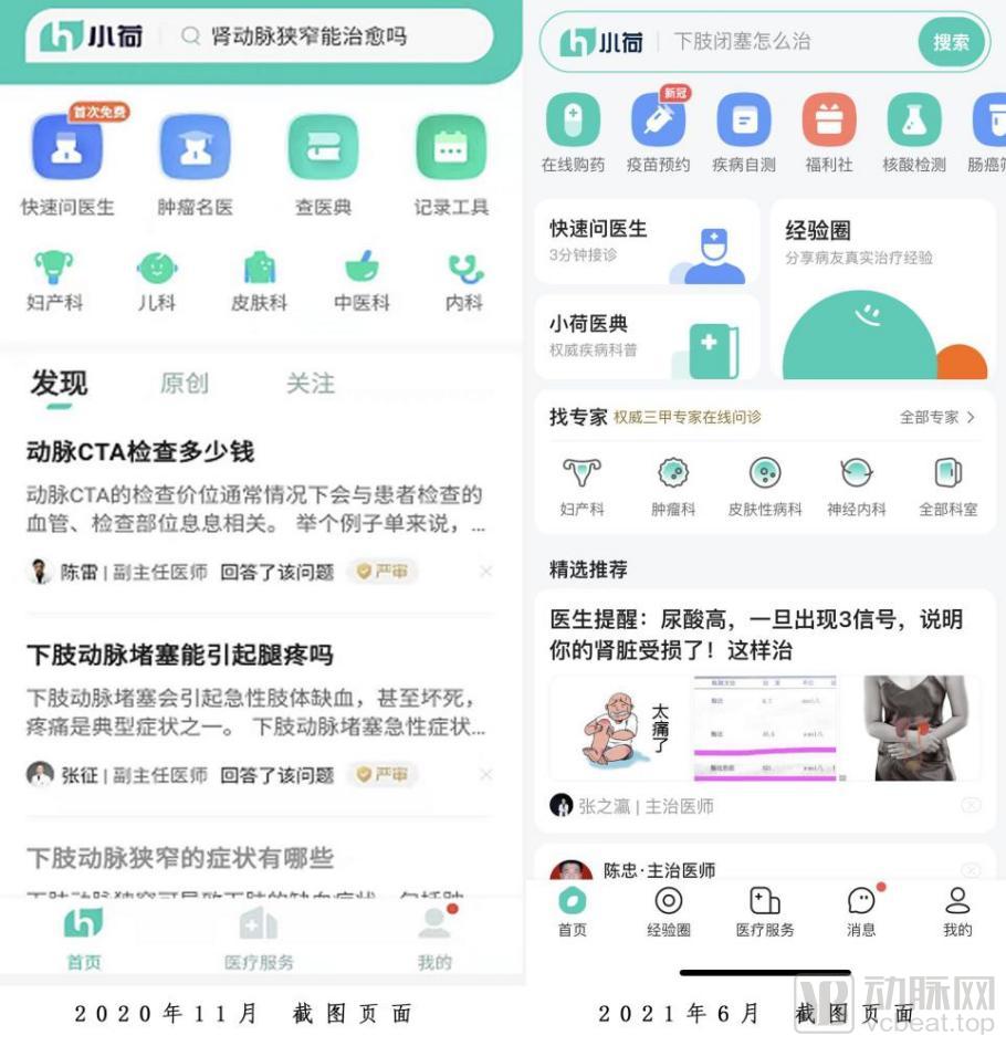 从界面上看,“小荷”APP与医鹿(原“阿里健康”)、平安健康(原“平安好医生”)、京东健康、春雨医生等APP在功能上十分相似。