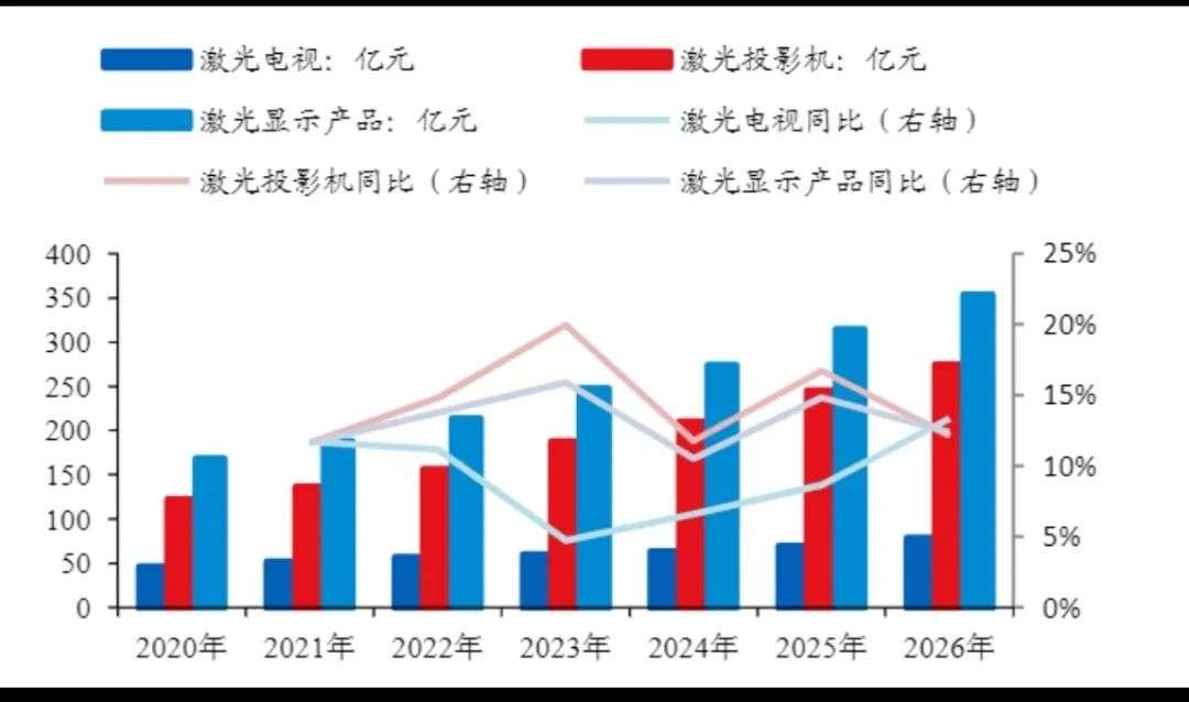 智研咨询预计: 2026年激光电视市场规模将突破78.7亿元,激光投影将突破274.9亿元 ,预期激光投影将成为激光产品的主体市场构成。