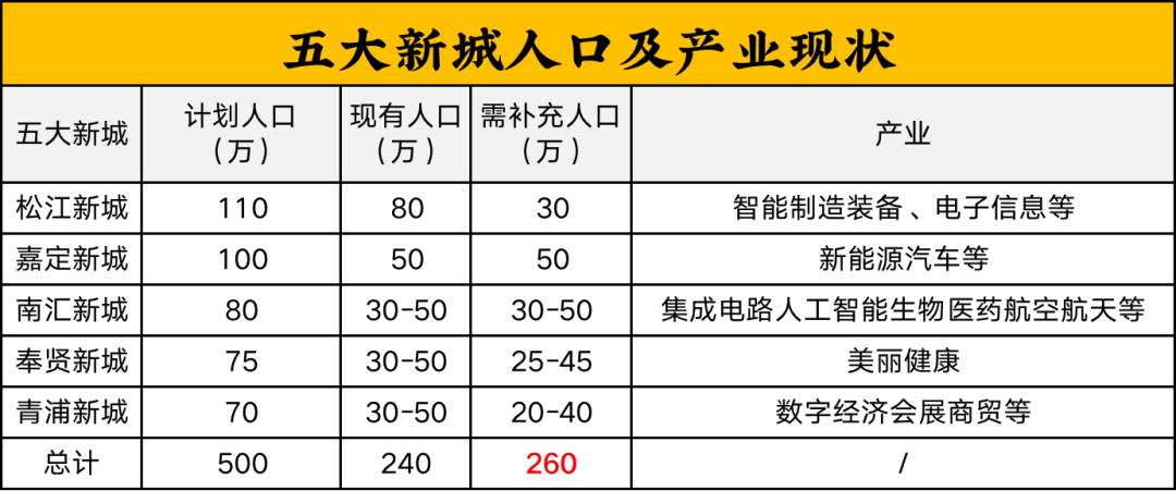 目前,五大新城常住人口总数约在240万左右,是有将近260万缺口的。(官方统计南汇、奉贤、青浦现人数约为30-50万之间)