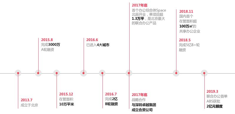 它也曾经获得了4轮融资,投资商涵盖了远洋、昆仑万维等知名创投和资本,它还发行了联合办公行业的首单ABS。