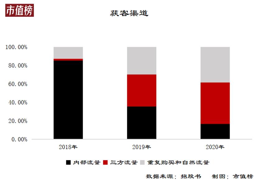 这就是水滴筹现在面临的困境,必须通过三方渠道购买流量。招股书显示,水滴保的财年收入中,三方渠道所占的比例从2018年的1.9%猛增至2020年的44.9%。