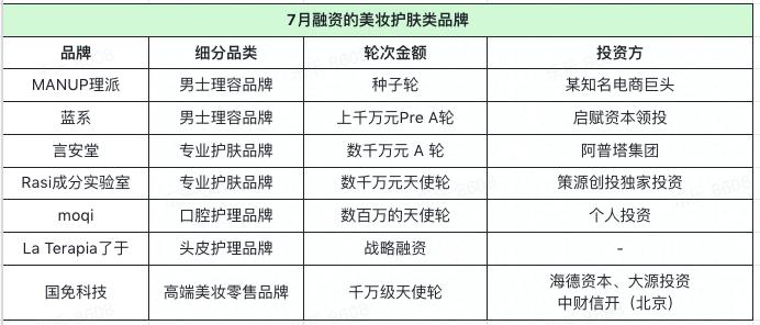 本月依旧有四个护肤新品牌拿到融资,思路依然是细分赛道男士理容和成分护肤。