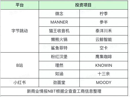 本月,字节跳动又相继投资了微念、柠季,B站投资了粉红汉堡,此类投资都是平台实现财务回报和争夺存量品牌资源的双赢策略