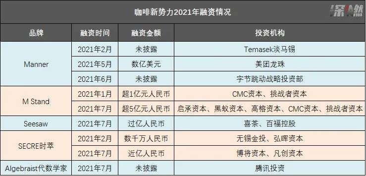 除了以上这三个品牌,今年拿到融资、声量较大的咖啡品牌还有SECRE时萃、Algebraist代数学家。