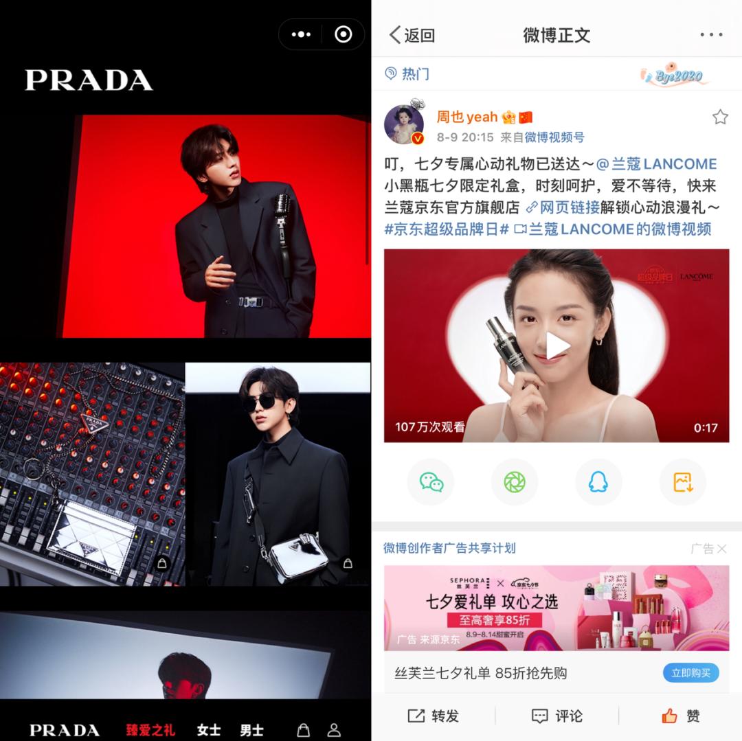 但七夕就不一样了,在该节点上映的广告大片或素材等其实只在特定时间阶段奏效,短时间内品牌想方设法驱动转化才是最行之有效的手段。因此,七夕期间品牌试图将明星影响力转化为销量,而明星在营销策略里所起的作用也越发“短平快”。