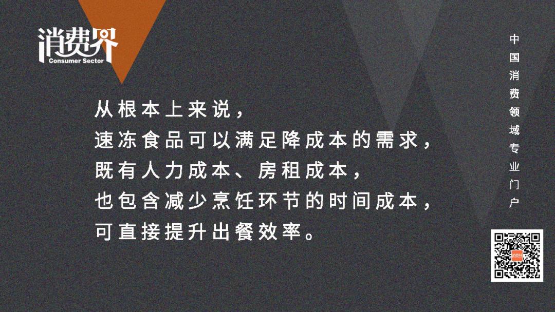 从根本上来说,速冻食品可以满足降成本的需求,既有人力成本、房租成本,也包含减少烹饪环节的时间成本,可直接提升出餐效率。