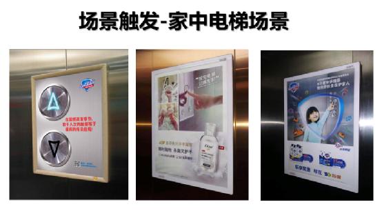 案例3:疫情后,结合电梯场景特性,舒肤佳推出的引导人们关注洗护、杀菌的家庭场景广告。