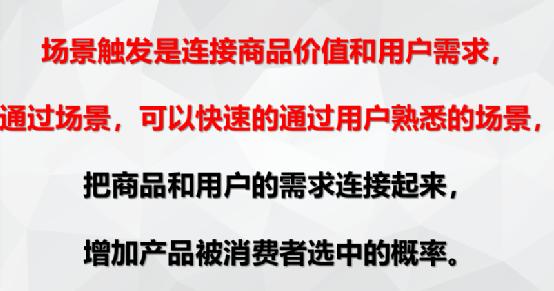 这便是场景的力量。在我提到的这个抖音电商的例子中,两个场景很关键:一个是沙漠地。在沙漠都能长得好的蜜瓜,能差到哪里去呢,肯定不错——这是我的心理预期。另一个场景是:现场切瓜及主播讲解。现场切瓜,让我初步了解瓜的品质,主播讲解增加新的知识量,刺激了我的购买行为。除此之外,还有一个核心支撑,那就是水果本来就是我平时需要购买的。