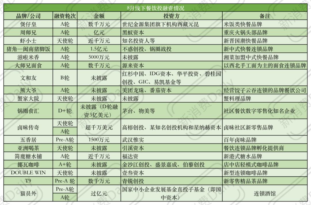 8月111轮融资56亿,新消费势弱,线下餐饮却在“狂欢”