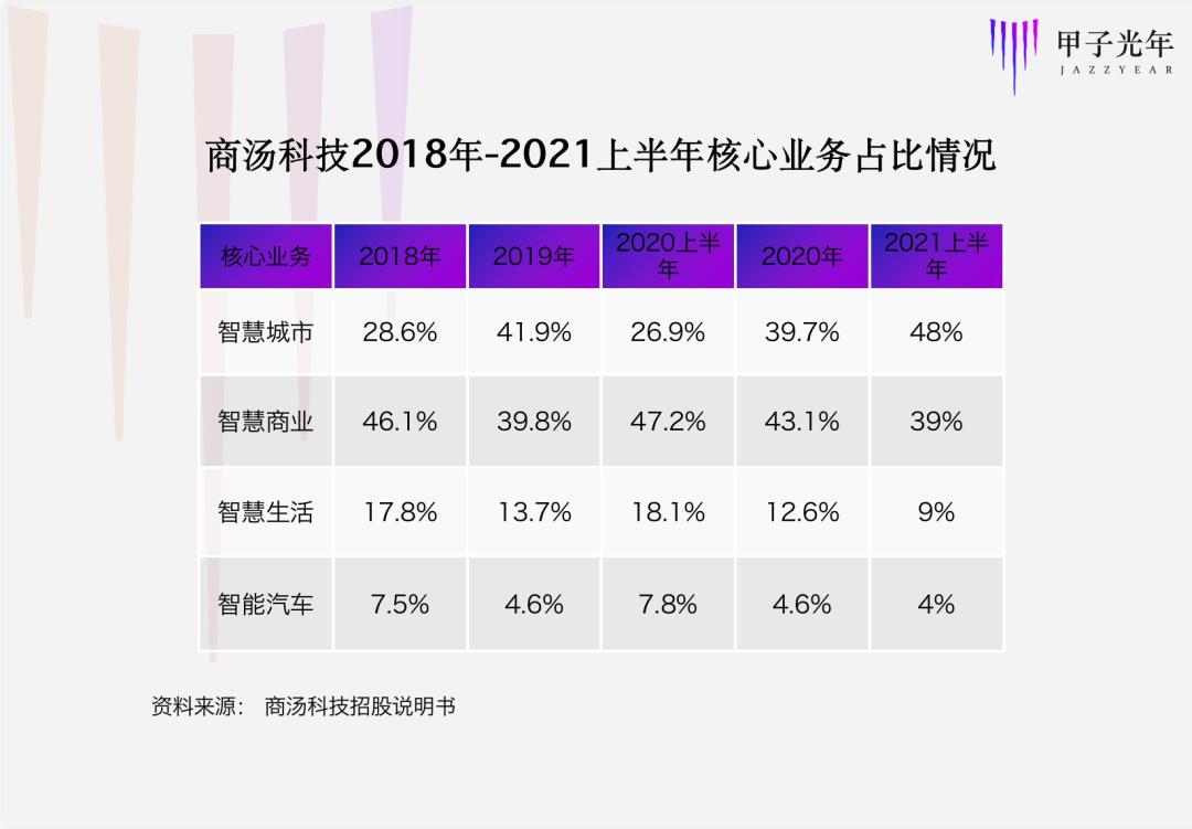 · 商汤科技2020年及2021上半年智慧城市业务营收占比分别达39.7%及47.6%;