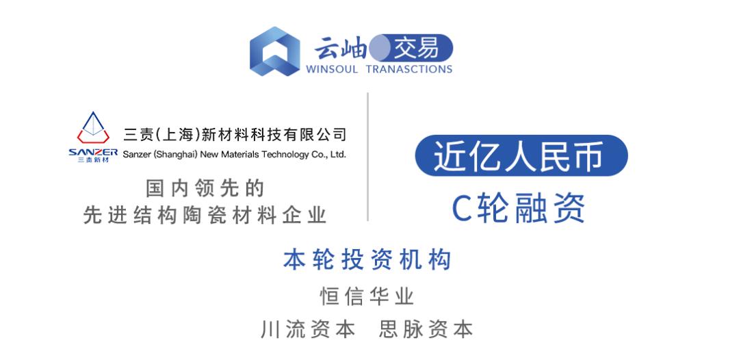 近日,国内领先的先进结构陶瓷材料企业三责(上海)新材料科技有限公司(“三责新材”)完成C轮近亿元融资,恒信华业战略领投数千万元,新材料行业专业投资机构川流资本和思脉资本参与跟投,云岫资本担任独家财务顾问。