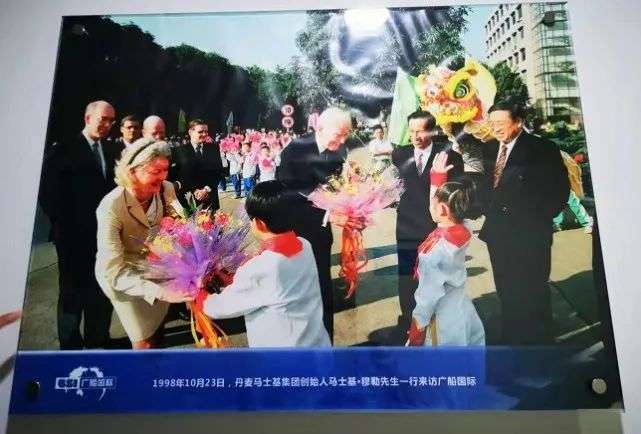广船国际办公室走廊上陈列了海运巨头马士基创始人来访照片 时代财经摄