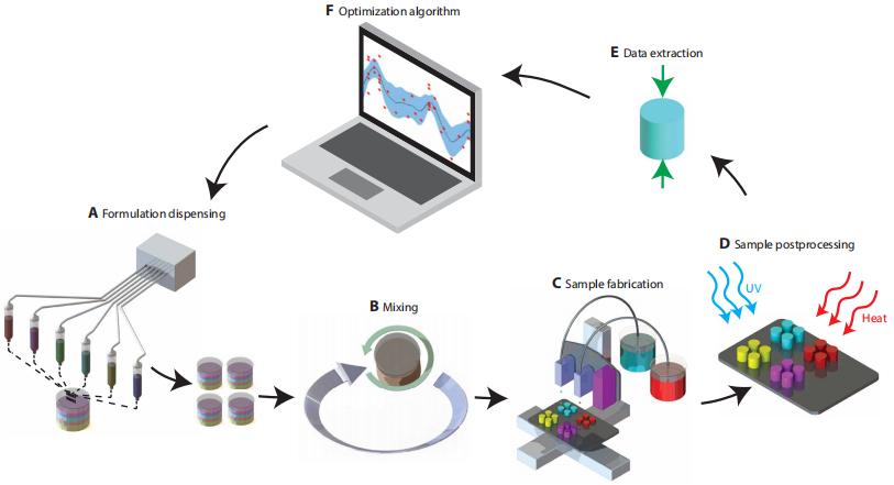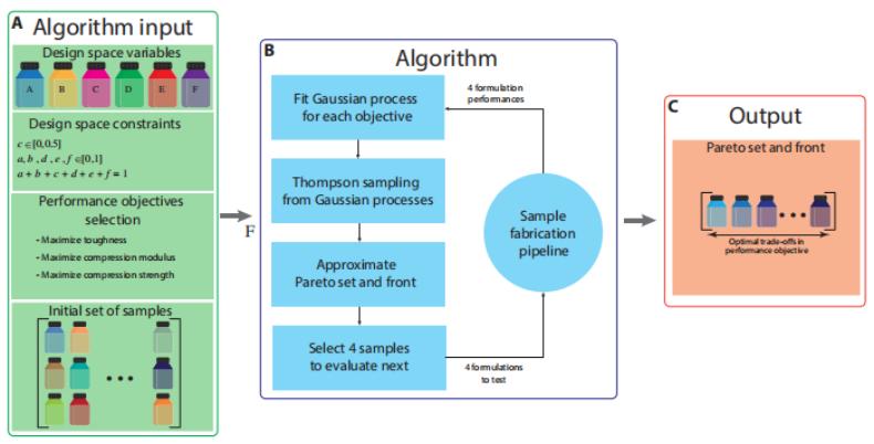 图|概述用于寻找最佳 3D 打印材料配方的优化算法(来源:Science Advances)