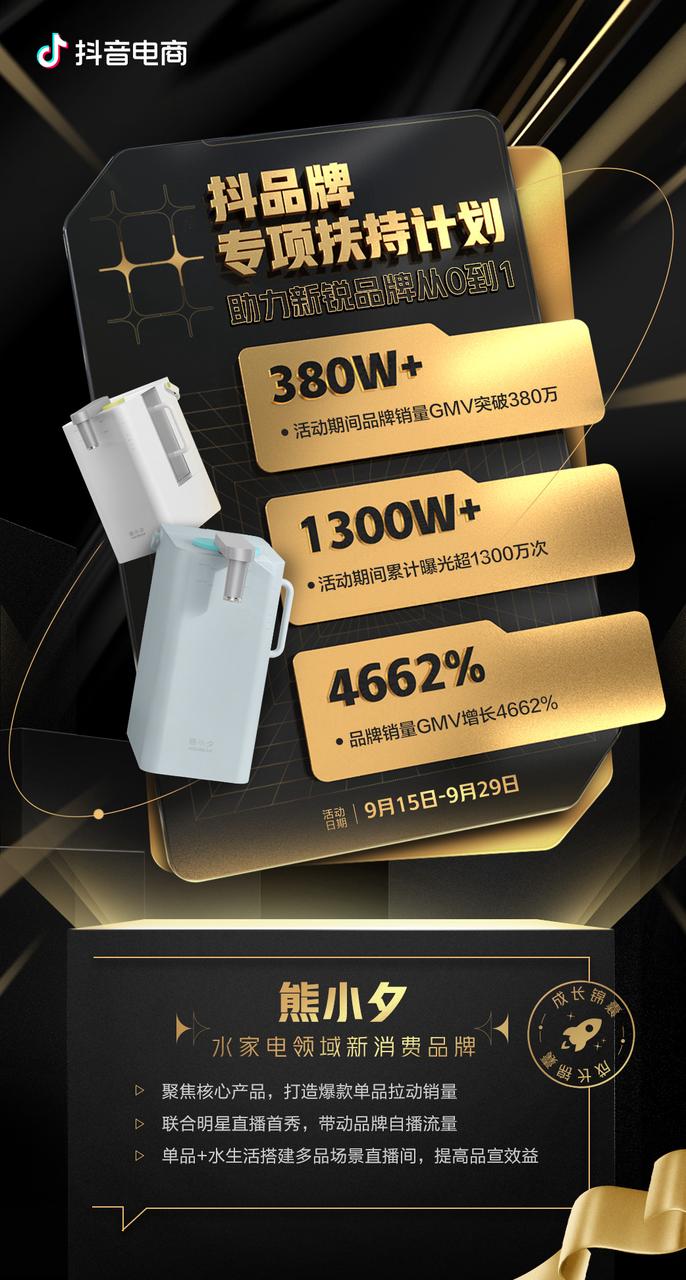 在净饮机类目下,熊小夕算是专家。 这是抖音电商在这一阶段给熊小夕带来的核心增值点,奠定了品牌接下来从垂类人群到广类人群的品牌出圈基础。