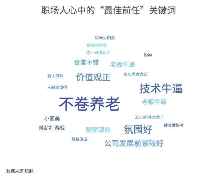 脉脉数据研究院在今年发布的《高值人才职业发展洞察》报告中显示,健康的身体、钱和家庭是职场人最为看中的三件事。而越在意的事情,记忆越深刻。在职场人追忆前任公司时,这些因子也成为了前任们美好的一部分。