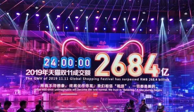 2019年,天猫双十一最终交易成交金额,定格在2684亿元,仅比2018年增长了549亿。