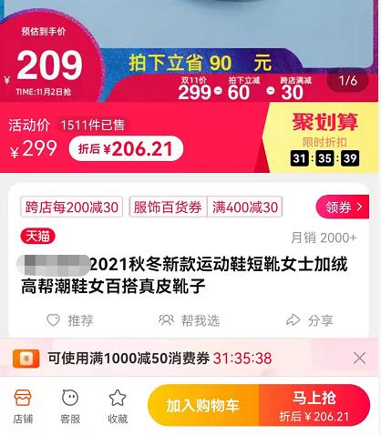 一顿操作猛如虎,付款后才发现忘记算200-30的优惠。