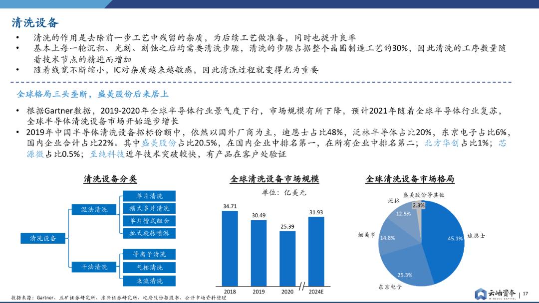 清洗设备全球市场规模在25亿~30亿美元之间,是会较快实现国产化的市场。